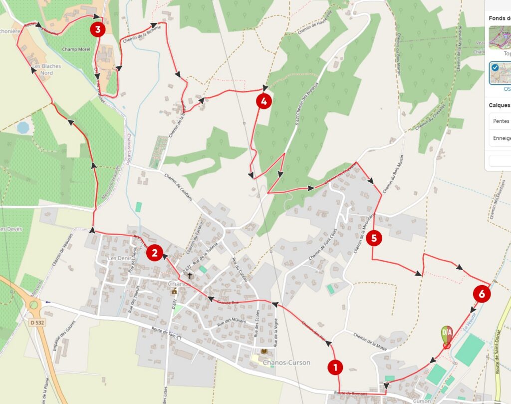 Le parcours serpente à travers les vignes et les chemins communaux, offrant des panoramas typiques du terroir du Crozes-Hermitage.